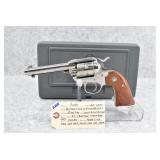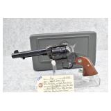 282R. Colt – Mod. Frontier Scout – 22LR Cal. Single Action Revolver – w/4.5” Barrel w/Front Blade & Groove Rear Sights – Blued Finish – w/Factory Rampant Colt Black Plastic Grip – w/Rampant Colt on Left Side of Frame