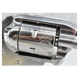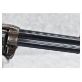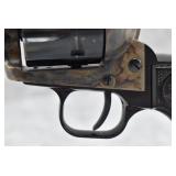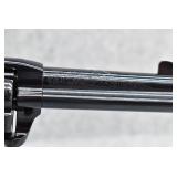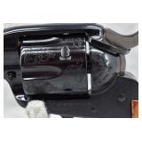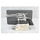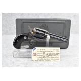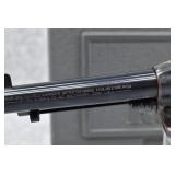 239R. Ruger – Mod. New Vaquero (Model #015121) – John Wayne Centennial Commemorative – 45 Colt Cal. Single Action Revolver – w/4.5” Barrel w/Front Blade Sight & Rear Grooved U Notch Sight – Blued Finish w/Factory Engraving – w/Factory Checkered Wood Grips Carved w/“JW” – Mfg. 2007 – New & Unfired w/Factory Hard Case, Sleeve & Manuals