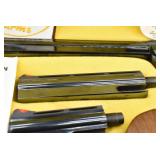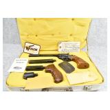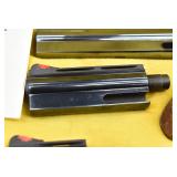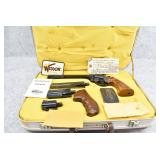 230R. Dan Wesson Arms – Mod. 22V Pistol Pac. 4-Barrel Set – 22LR Cal. Double Action Revolver – w/2 ½”, 4”, 6” & 8” Heavy Full Shroud, Vent-Rib Barrels w/Red Ramp Blade Front & White Outlined Adj. Rear Notch Sights – Blued Finish w/DWA Checkered Wood Grips & Finger Groove Smooth Wood Grips – w/Aluminum Carry Case, Barrel Wrench, Wesson Jacket Patch & Belt Buckle