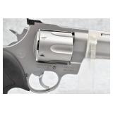 208R. Ruger – Mod. GP-100 – 357 Mag. Cal. Double Action Revolver – w/6” Barrel w/Ramp Blade Front and Adjustable Rear Notch Sights – Stainless Finish – w/Factory Textured Molded Black Rubber Grips – Unfired w/Factory Hard Case, Manual, and Accessories