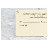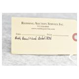 Redding Auction Service Inc. reserves the right to hold any or all merchandise purchased by personal check until the check has cleared the bank. If shipping is requested/required by the purchaser, all packing and UPS/USPS shipping charges will be paid prior to shipping.