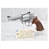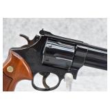 237R. Smith & Wesson – Mod. 58 – Re-Chambered From 41 to 44 Mag. Cal. Double Action Revolver – w/4” Barrel w/Ramp Blade Front & White Outlined Adj. Rear Notch Sights – Armoloy Coated Finish – w/S&W Factory Checkered Wood Target Grips, Target Trigger & Target Hammer (3T’s)