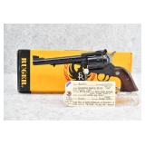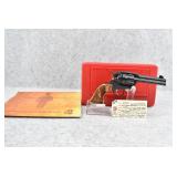 238R. Ruger – New Model Single Six – 32 H&R Mag. Cal. Single Action Revolver – w/4.5” Barrel w/Front Blade Sight & Rear Grooved U Notch Sight – Blued Finish w/Case Hardened Frame – w/Factory Smooth Wood Birds Head Grip w/Ruger Medallion – w/Factory Hard Case & Manuals – Mfg. 2002