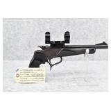 242R. Thompson Center -Mod. Contender – 357 Mag. Cal. Single Shot Pistol – w/10” Round Barrel w/Front Blade Sight – Blued Finish – w/Black Grooved Wood Pistol Grip w/Checkered Rubber Forearm – w/2pc. Scope Rings & Mount