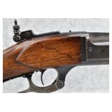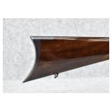 255R. Winchester – Mod. 1885 High Wall – 38-55 Win. Falling Block Single Shot Rifle – w/30” #3 Barrel Weight Octagon Barrel w/Target Globe Front & Marbles Adj. Rear Barrel Sights w/Long Range Vernier Tang Peep Sight – Blued Finish – w/Straight Grip Wood Stocks w/Brass Swiss Butt Plate – w/Factory Special Order Double Set Triggers – Gun Retains an Incredible Amount of Original Blued Finish