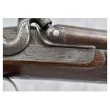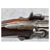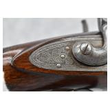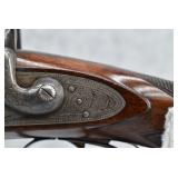 257. Collins – 12ga. Black Powder Double Barrel Shotgun – w/31” Damascus Barrels w/Front Bead Sight – Fine Engraved Receiver – w/Checkered Straight Grip Wood Stock – w/Double Triggers – w/Ram Rod – High Quality Gun!