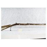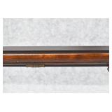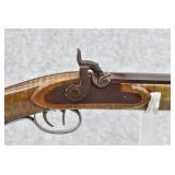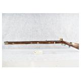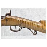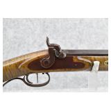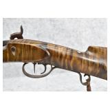 261. Unsigned Custom Contemporary Half Stock 64 Cal. Percussion Black Powder Rifle – w/36” Octagon Barrel w/Blade Front & Buckhorn Adj. Rear Sights – Brown Finish – w/Straight Grip Curly Maple Half Stock w/Crescent Metal Butt Plate & Trigger Guard – w/Double Set Triggers – w/Wooden Ram Rod