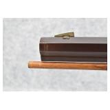 265. Signed Custom Contemporary G & L Deck-Nazareth – 45 Cal. Flintlock Black Powder Rifle – w/40” Octagon Barrel w/Blade Front & Notch Rear Adj. Sights – Brown Finish – w/Straight Grip Full Length Tiger Maple Wood Stock w/Brass Butt Plate & Brass Furniture – 4pc. Patchbox Inscribed “Jacobsburg Encampment” – w/Wooden Ram Rod