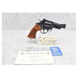 212R. Colt – Mod. King Cobra – 357 Mag. Cal. Double Action Revolver – w/3” Barrel w/Blade Front and Rear Notch Sights – Stainless Finish – w/Colt 3-Finger Molded Black Rubber Grips – Unfired w/Factory Hard Case, Manuals, and Accessories