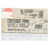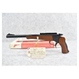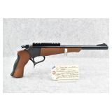 275R. Thompson Center – Mod. Contender – 22 Hornet Cal. Single Shot Pistol – w/Super 14” Barrel w/Blade Front Sight – Blued Finish – w/Factory Rubber/Wood Pistol Grip & Forearm – w/1pc. Scope Base – w/Factory Barrel & Frame Boxes