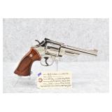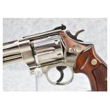 280R. Smith & Wesson – Mod. 27-2 – 357 Mag. Cal. Double Action Revolver – w/6” Barrel w/Partridge Front & Adj. Rear Sights – Nickel Finish – w/S&W Medallion Factory Checkered Target Wood Grips, Target Trigger & Target Hammer (3T’s)