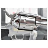 284R. Ruger – Mod. New Vaquero – 45 Colt/45 Auto Cal. Dual Cylinder Combo Single Action Revolver – w/4.5” Barrel w/Front Blade Sight & Groove Rear Sight – Stainless Finish – w/Factory Black Checkered Ruger Grips w/Ruger Eagle – w/45 Auto & 45 Colt Cylinders – w/Factory Hard Case & Manual – Mfg. 2012