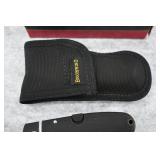 219R. Browning – Mod. 1911-22 – 100th Anniversary Commemorative – 22 Long Rifle Cal. Semi-Auto Pistol – w/4” Barrel w/Front & Rear Sights – Blued Finish – w/Factory Checkered Wood Grips – w/Factory Mag – Slide is Etched w/Anniversary Banners & Scrolling – w/Factory Soft Case, Manuals, Shipping Sleeve & Wooden Display Case, No Knife