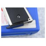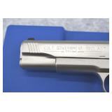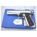 210R. Colt – Mod. Government Model Competition Series (01073CCS) – 38 Super Cal. Semi-Auto Pistol – w/5” National Match Barrel w/Fiber Optic Blade Front and Adjustable Rear Notch Sights – Stainless Finish – w/Factory Colt Black and Blue Laminated Checkered Grips – Unfired w/Factory Colt Hard Case, Manual, Accessories, and 1 Factory Detachable Magazine