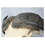 264. Custom Contemporary Hawken Jr. Style Rifle – 54 Cal. Percussion Black Powder Rifle – w/35” Octagon Barrel w/Blade Front & Large Ornate Base Buckhorn Rear Adj. Sights – Brown Finish – w/Straight Grip Full Length Curly Maple Wood Stock w/Raised Cheek Piece w/Crescent Metal Butt Plate w/Silver Furniture – w/Buffalo Emblem & Star Inlays on Left Side of Stock – w/Double Set Triggers – w/Wooden Ram Rod