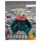 Steiff Bear with Red Ribbon and Christmas Tag |