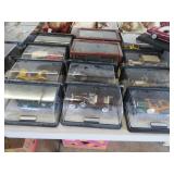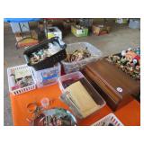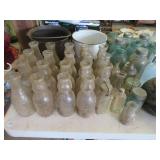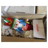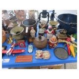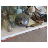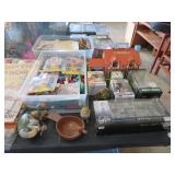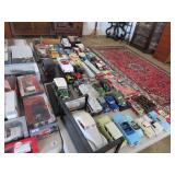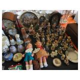 Steinbach nutcrackers with tags & boxes; Hummel dolls; Hummels; Hummel plate, ashtray & more; Lots of old milk bottles including cream tops; Vinegar bottles; Bail canning jars; Lots of scale model cars; Old dolls; Collectible dolls; Bellows; Tin steamboat toy; Pierced tin candle holder lantern; Father Christmas doll; Seashell encrusted box; Wooden bucket with brass bands; Old photos & frames; Brass coal bucket; Glass trinket box; Collectible spoons & display; Binoculars in case; Set of enamel on metal bowls; Foo dog; Doll carriage; Hess RV;