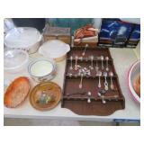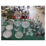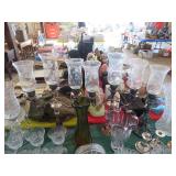 Silver! S&P shakers; Candlesticks; Glass swans with silver details; Candelabra with etched globes; Rimmed coasters; Flatware; Compote & more!