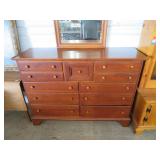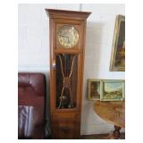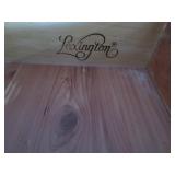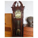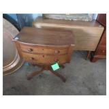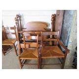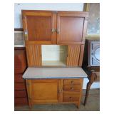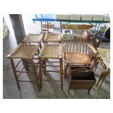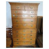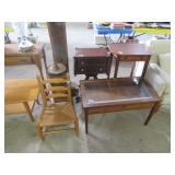 Set of 10 Clore chairs (2 arm); Clore Acorn post beds; Clore side chairs; Clore armchair; Leather massage chair; Lexington chest of drawers; Tall chest on chest; 1 door cabinet; Grandfather clock with visible pendulum; Hoosier with white enamel worktop; 3 level plate/tray server; Round display table; Dropleaf dining table; 2 drawer end table; Hanging bookshelf; Chairside magazine rack; Porch rocker with cushions; Live edge tripod stool; Rocking chair; End table; Lounge chair; Long bench;