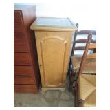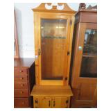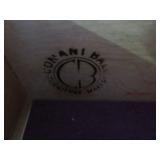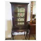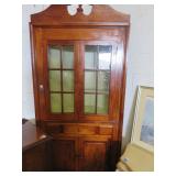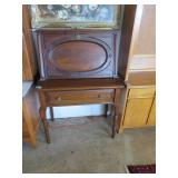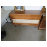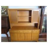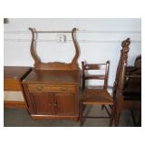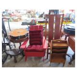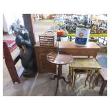 Great MCM furniture-Buffet with open hutch top & pair of woven panel doors marked Conani Ball Furniture Makers, Stereo cabinet with Telefunken record player, Iconic ceramic lamp, Sofa, 2 level table, White chair, Gentleman’s valet chair, Nightstand, End & coffee table set; Tall dresser, Chest of drawers; Buffets; Marble top table; Padded bench; Drop side coffee table; China cabinet with carved crest; Gun cabinet with glass door; Oak washstand with towel bar; Piecrust edge plant stand; Pedestal drum table;