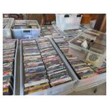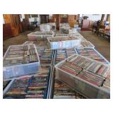 Table after table of CDs & DVDs – all genres, including Blu-Rays; LeCreuset dutch oven; Boxed toys & collectibles; Star Wars Mr. Potato Head; Bad Robot; Aliens; Tim Burton figurines; Scale model cars with inner & outer boxes; Stereoview & Much Much More!