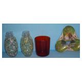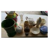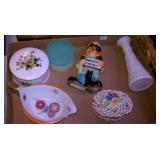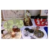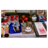 Lots of beautiful art glass, bone china cup & saucer sets, primitives, advertising, lighting, ephemera, political memorabilia, figurines, pottery, dinnerware, old bottles, automobilia, Nutting books, bells, Grandma Moses portfolio, Holiday decor', magazines, travel and holiday postcards, yearbooks, maps, crystal, art pottery, Nippon, Scouting, fishing items, purses, jewelry, Limoges, Silesia, Bavarian, candlesticks, clocks, Military, Oil Bottles, Cameras, Clocks, Kennedy memorabilia, Cast Iron, Occupied Japan, Jack-in-the-pulpit vases, depression glass, art pottery, Asian collectibles, Porcelain dolls, more unlisted. |