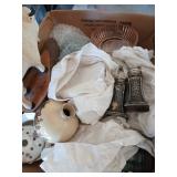 •ANTIQUES & COLLECTABLES• 1800's oak 4' long glass top, sides, & sliding back doors cabinet display * waterfall vanity & mirror * egg basket * copper fire extinguisher * old 3 drawer pine chest * snow sled * small tabletop glass side display * 1800's -fold down stroller highchair with metal wheels * Raggedy Ann Doll bed * wicker doll stroller * 5 drawer pine chest * (2) handstitched quilts * hand painted gone with the wind lamp * car music box * newer coke sign * antique wall clock * oil cans * Round Butter mold * dovetail wood boxes * lots of small collectables * antique pine cradle * several sterling rings * mantle clock * misc. coins * copper chafing dish * old microscope in wood box * square & round cheese boxes * Sterling Brand vintage fan * Keystone projector * signed prints * porcelain urn * oil lamp * (3) boxes of jewelry * Burled wood lamp table * golf picture * minnow bucket * flattop trunk * round mahogany lamp table * carved 1800's side chairs * child’s wood school desk * swan tv lamp * wood planes * maple high chair * display cabinet * camelback trunk * Duncan Phyfe lamp table * Jar of marbles * •FURNITURE• oak jewelry armoire * 4' folding table * round ottoman * oak dining table & 6 chairs * metal 5 tier shelf * oak side table * folding chairs * black end table * metal 4 tier shelf * box fan * nice plant stand * kitchenware * area rugs * 3 tier wood shelf * walnut side table * corner lamp table * tv’s & tv cabinet * Jackson Furniture sofa * (2) small book shelves * pine knee hole desk * oak medicine cabinet * metal folding shelf * drying rack * 4 drawer chest * (2) whistling tea pots * 5 drawer chest & nightstand * marble top lamp table * settee * (2) halfmoon tables * (10) armed side chairs * lamp table with electricity * tall metal vases * 1 drawer small table * marble top entryway table * 3 drawer unfinished chest * wood folding shelf * •GLASSWARE• game plates * colored vases * measuring pitches * dish set * blue willow * snack sets * tom & jerry punch bowl set * chicken dishes * Rosenthal dinnerware * s&p’s * m’con vase * hand painted plates * Limoges * donkey planter * Carnival fluted bowl * Delpt vase * flo blue *(2) unmarked Roseville bowls * cat plates * saltglaze pitches * stoneware pitchers * wall pockets * Hull planter * spongeware bowl * 3 pieces signed weller pottery * goofus glass bowl * crystal pieces * •MISC.• elliptical exerciser * Christmas items * Sunny exercise bike * wood box with tools * several pocketknives * small handgun safe * several boxes of new items * Beeman 177 cal. pellet gun * Jorgeson wood clamps * old tools * fruit jars * decorative colored rocks * (7) golf club bags with golf clubs * weed eater * Dewalt drill * books * portable sewing machine * several rod & reels * (2) tackles boxes with lures * |