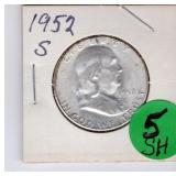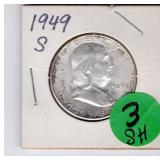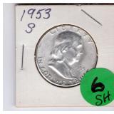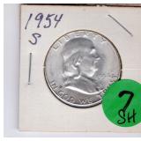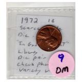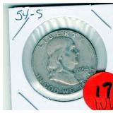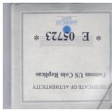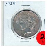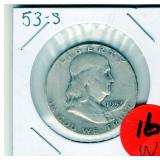 Coin & Currency Auction Sunday Dec. 7th @ 9:30 AM 2246 Lebanon Valley Mall Lebanon, Pa. 17042 Lot JM 01. (1880) Indian cent 02. (1915 & 1915-D) Lincoln Cents 03. (1864) Two Cent 04. (1857) Half Dime 05. (1945-S) Silver Jefferson Nickel 06. (1927-S) Mercury Dime 07. (1928-D) Mercury Dime 08. (1930-S) Mercury Dime 09. (1945-S) Mercury Dime 10. (1893) Barber Quarter 11. (1929-D) Standing Liberty Quarter 12. (1936) Washington Quarter 13. (1958-D) Washington Quarter 14. (1908-D) Barber Half Dollar 15. (1912-S) Barber Half Dollar 16. (1963) Franklin Half Dollar 17. (1973-S) Proof Kennedy Half Dollar 18. (1922-D) Peace Dollar 19. (2023 P&D) Cent,Nickel,Dime-Unc 20. (2024 P&D) Cent,Nickel,Dime-Unc Lot OM 01. 6 -Steel Cents 02. (1924-S & 1925-S) Lincoln Cents 03. 16- Full Date Buffalo Nickels- P&D&S 04. (1917-S) Buffalo Nickel.. H.G Full Horn RES 05. (1928-S) Buffalo Nickel 06. (1930-S) Buffalo Nickel.. Bold Details 07. (1937-S) Buffalo Nickel.. Mint State 08. (1913-D & 1915-D) Lincoln Cents 09. (1972) Lincon Cent.. Double Die Variety "In God We Trust" *RES 10. (1915-S) Lincoln Cent 11. (1859) California Gold Token 12. 12- Full Date Buffalo Nickels.. P&D&S) 13. (1946) Roosevelt Dime.. DDO "WE " Doubled 14. (1999) Proof Set 15. (1999) S.B.A. Proof Dollar W/COA &Bo 16. (1972) Coin Set 17. Lincoln Cent Book II Complete (1941-1963-D) 18. (1955-S & 1951-D) Lincoln Cents 11 Total 19. (1931-D) Lincoln Cent 20. (1961) J.F.K. Collector Coin 21. 3- Error Coins 22. (1988) Australia Mint Set 23. (1974-S) Proof Kennedy Half 24. IKE Dollar Collection 25. 11- Higher Grade-Better Dates Indian Cents *RES 26. (1940-D over S) Washington Quarter *RES 27. 32- High Grade Red Wheat Cents (1954-1958) Lot DA 01. (1964) Silver Kennedy Half 02. (1941-S) Walking Liberty Half 03. (1944) Walking Liberty Half 04. (1946) Walking Liberty Half 05. (1952) Franklin Half 06. (1951-D) Washington Quarter 07. (1952-D) Washington Quarter 08. (1958-D) Washington Quarter 09. (1960-D) Washington Quarter 10. (1962-D) Washington Quarter 11. (1946) Roosevelt Dime 12. (1950) Roosevelt Dime 13. (1954) Roosevelt Dime 14. (1956) Roosevelt Dime 15. (1956-D) Roosevelt Dime 16. (1954) Franklin Half Dollar 17. (1957) Franklin Half Dollar 18. (1961) Franklin Half Dollar 19. ((1964) Silver Kennedy Half 20. (1967) Kennedy Half.. 40% Silver 21. (1934) Wahington Quarter.. Very High Grade 22. (1959) Washington Quarter 23. (1963-D) Washington Quarter 24. (1964) Washington Quarter 25. (1967) Washington Quarter 26. (1961-D) Roosevelt Dime 27. (1962) Roosevelt Dime 28. (1963) Roosevelt Dime 29. (1963-D) Roosevelt Dime 30. (1964) Roosevelt Dime Lot SH 01. (2016) Silver Eagle Dollar.. Unc 02. (2016) Silver Eagle Dollar.. Unc 03. (1949-S) Franklin Half Dollar.. PR 04. (1951-S) Franklin Half Dollar.. PR 05. (1952-S) Franklin Half Dollar.. PR 06. (1953-S) Franklin Half Dollar.. PR 07.(1954-S) Frankli Half Dollar.. PR 08.(1954-S) Franklin Half Dollar.. PR 08. (1955) Franklin Half Dollar.. PR 09. Valcambi 3 grams .999 Silver 10. (1940-P&D&S) Mercury Dimes 11. (1941-P&D&D) Mercury Dimes 12. (1942-P&D&S) Mercury Dimes 13. (1943-P&D&S) Mercury Dimes 14. (1944-P&D&S) Mercury Dimes 15. (1945-P&D&S) Mercury Dimes 16. Pa. State Police Trooper Memorial Ride Coin 17. (1923) Peace Dollar 18. Put on The Whole Armor of God Medal 19. 163rd Armored Brigade "Courage and Valor" Coin 20. (2007) Silver Eagle Dollar.. 1oz Fine Silver With Gold Plating 21. (2005) Silver Eagle Dollar.. Colorized Obv 1oz Fine Silver 22. 6- Indian Cents 23. 6- Indian Cents 24. 6- Indian Cents 25. 6- Indian Cents 26. (2009) $10 Star Note 27. (2008) $20 Star Note 28. (1996) $50 Star Note 29. (2006) $5 Star Note 30. (2019) $5 Star Note Lot DH 01. (1863) Indian Cent 02. (1852) Large Cent 03. (1828) Large Cent 04. (1919) Lincoln Cent.. High Grade 05. (1917) Lincoln Cent.. High Grade 06. (1976-S & 1978-S) Proof Lincoln Cents 07. (1863) Indian Cent 08. (1952) Red Lincoln Cent 09. (1904) Indian Cent.. High Grade 10. (1946) Jefferson Nickel.. High Grade 11. (1949-S) Jefferson Nickel 12. (1940-S) Mercury Dime Fs-501 "S over S".. Scarce 13. (1926-S) Mercury Dime.. Semi key 14. (1927) Standing Liberty Quarter 15. (1981-S) Proof Dime 16. (1971-S) Proof Quarter 17. Florida & Texas & Michigan Quarters.. Unc 18. (1976-D) IKE Dollar 19. (1999-D) S.B.A. Dollar 20. (1965) Kennedy Half.. 40% Silver 21. (1976) Kennedy Half 22. (2002-P&D) Kennedy Halves.. Sealed 23. (2003-D) Kennedy half.. Sealed 24. (1936) Red Lincoln Cent 25. (1931-D) Lincoln Cent.. Key Date..RB *RES 26. (1921-S) Buffalo Nickel.. 2 Feather Variety,Bold Horn..AU Extremly RARE *RES 27. (1923-S) Buffalo Nickel.. Semi Key *RES 28. (1924-S)) Buffalo Nickel.. Key Date *RES Lot DL 01. (1981) ProofSet 02. (1982) Proof Set 03. (1983) Proof Set 04. (1984) Proof Set 05. (1985) Proof Set 06. (1921) Peace Dollar 07. (1987) Silver Eagle Dollar 08. (2014) Silver Eagle Dollar 09. (1999) Silver Eagle Dollar.. Colorized Obv 10. (1987) Canadian Dollar.. Unc 11. 10- Proof Lincoln Cents 12. 37- Canadian BU Cents 13. (1999) 5 State Quarter Proof Set 14. 1 Pound Wheat Cents P,D&S 15. (1987) Proof Set 16. (1988) Proof Set 17. (1989) Proof Set 18. (1990) Proof Set 19. (1991) Proof Set 20. (1992) Proof Set Lot HD 01. 8- Unc Coins 02. 50- Mixed Wheat Cents 03. (1971) Mint Set P&D 04. (1972) Mint Set P&D 05. (1968) Mint Set P&D W/ Silver Half Dollar 06. Indian Head Book W/35 Coins Some Semi-Keys *RES 07. Liberty Nickel Book W/14 Coins 08. (1941-1976) Lincoln Book Completed 09. (1909-40's) Lincoln Book W/72 Coins 10. (1975-1999) Lincoln Book Mostly Red 11. Bag of 40 Buffalo Nickels 12. Bag of 40 Buffalo Nickels 13. Tube of Jefferson Nickels ..Prior to 1964 14. Tube of Jefferson Nickels.. Prior to 1964 15. Tube of Jefferson Nickels Prior.. to 1964 16. Bank Roll of (1968-S) Lincoln Cents 17. Bank Roll of (1968-S) Lincoln Cents 18. 22- Steel Cents 19. 19- Lincoln Wheat & Memorial Cents Lot WW 01. (1922) Peace Dollar 02. (1923) Peace Dollar 03. (1879) Morgan Dollar 04. (1880-0) Morgan Dollar