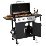 SUPERIOR GRILLING PERFORMANCE: Our advanced 4-burner gas grill delivers 10,000 BTUs of heat per burner, heating up quickly in just 10 minutes and distributing heat evenly for outstanding grilling results. The built-in precision thermometer lets you control the temperature with accuracy, whether you're searing on high heat or locking in juices on low heat. Say goodbye to undercooked or burnt food
