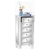 VNGLI Mirrored Dresser 5 Drawers Modern Chest, Mirrored Chest of Drawers, Glass Dresser for Bedroom, Dressing Room, Living Room