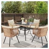 5-Piece Outdoor Dining Table Chair Set, All-Weather Wicker Dining Set for 4, 4 Cushioned Chairs & Glass Table for Garden, Deck, Backyard(INCOMPLETE SET, ONLY INCLUDES 4 COMPLETE CHAIRS W/BROWN CUSHIONS-NO HARDWARE)