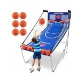 Dual Shot Basketball Arcade Game, Segmart 81"x44" Foldable Indoor Electronic Arcade Basketball Game with 6 Balls, 8 Modes, LED Scoreboard, Air Pump, Battery Powered for Adults, Blue