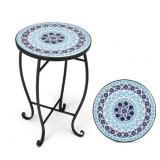 14" Round Mosaic Outdoor Side Table Blue Ocean