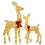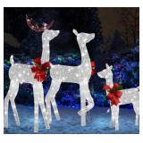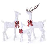 3-Piece Large Lighted Christmas Deer Family Set - 3D White Reindeer Christmas Outdoor Yard Decorations with 200 Led Warm White Lights, 10:1 Flickering Lights, Stakes, Zip Ties (ANTLERS APPEAR TO BE ALL WHITE)