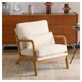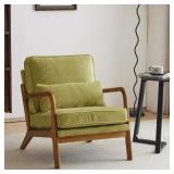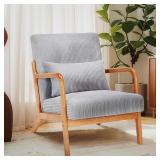 Karl home Mid Century Modern Accent Chair with Lumbar Pillow & Oak Arms – Plush Chenille Living Room Chair for Bedroom, Lounge