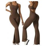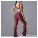 Sleeveless Flare Jumpsuits for Women Sexy Backless Bodycon V Back Scrunch Butt Yoga Rompers Seamless Workout Bodysuit(S)