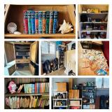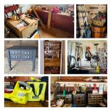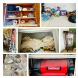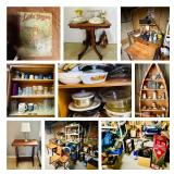 Treasures Galore! Check out the garage featuring quality tools by Craftsman, Ryobi, Little Giant Ladder and a great selection of lawn tools. Explore the fine collection of vintage glassware, colored glass, a nice selection of everyday dinnerware, pots/pans and kitchen gadgets. Get ready for the holidays with Dept. 56 accessories and spruce up your home with beautiful vintage and antique décor and figurines, an impressive curio cabinet, clocks, side tables, lamps, bookcases, precious white dresser with mirror, metal bedframe and desks. Don’t pass up the ‘boat’ shelf and right sized bar cabinet full of barware. Vintage ‘The Junior Classics’, football card, and a basement stuffed with hidden treasure just waiting for you to discover! Everything must go!