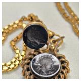 This collection of jewelry features a wide array of styles, including many gold and sterling pieces. You'll also find vintage 1970s Native American sterling, antique costume jewelry and signed costume jewelry from Trifari, Napier and others. |