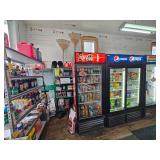 Selling After the Real Estate: SST Double Door Koch Upright Cooler; Coca-Cola & True Brand Upright Glass Door Coolers.