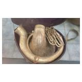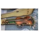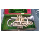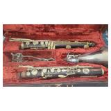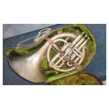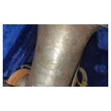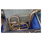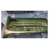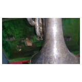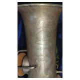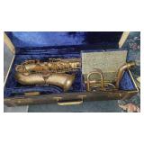 EARLY MUSIC INSTRUMENTS: Note: All are As-Is: HN White King Tuba w/Case, Double Bass, Cavalier Alto Clarinet, Lyons Monarch Clarinet, Victory Clarinet, Concertone Trumpet, American Saxophone, HN White Trumpet, French Horn, Violin, Gladiator Trombone & Honer Accordion.