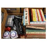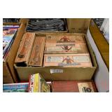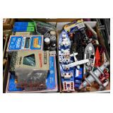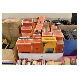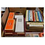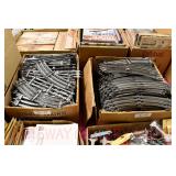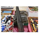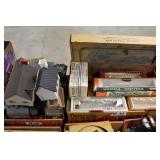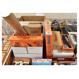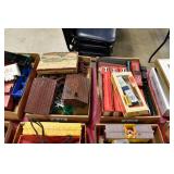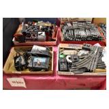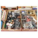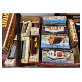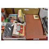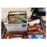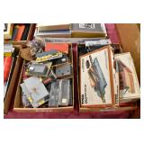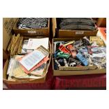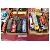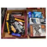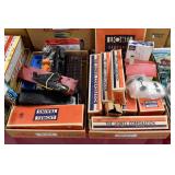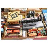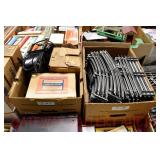 UNCATALOGED: Traylots consist of HO rolling stock, engines, and buildings; Marx trains and toys; display shelf; storage containers; Plasticville; Lionel parts in part envelopes; empty Lionel boxes; railroad and toy train books and magazines; transformers; Lionel accessories. Uncataloged items sold AFTER cataloged items and available live bidders and absentee bids.
