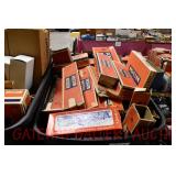 87 Lionel HO Plasticville: 0419 Rail Junction, 0411 Switchman Shanty, 0418 Industrial Area Set, 0415 Cape Cod Set (Missing 1 Tree) OB