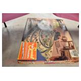 81 Marx O Gauge: Set #31375: 666 Loco/SP Slopeback Tender, NYC Crane, Cities Service Tanker, Erie Flatcar, SF Boxcar, SP Caboose, Water Tower, Semaphore, Crossing Gate, Billboard, Track, Transformer, Bridge, Poles, Lights, Bumper, Backdrop Set Box