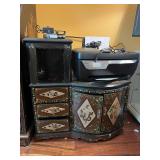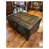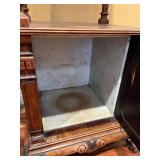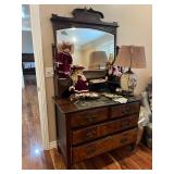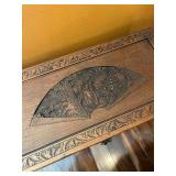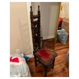 · Antique Pieces: Chinese Carved Camphor Wood Chests, French Roccoco Carved Wood Vanity w/Glass Top, Carved Wood Bedroom Set in the Style of Gabriel Viardot w/Added Ornate Dragon (Armoire, Bed, Mirror), Jacobean or Spanish Style High-Back Prayer Chair, Wooden Day Bed, Hall Trees, Black Lacquer Chinoiserie Secretary Desk, Black Lacquer Oval Coffee Table w/Stools, Barley Twist Leg Table