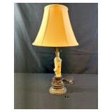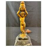 Art Deco Gilt Painted Cherub Onyx Marble Lamp