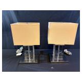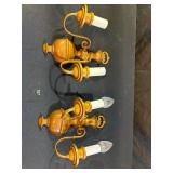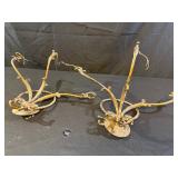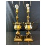 Pair Double Arm Brass Urn & Marble Table Lamps