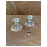 Cambridge Cleo Etched Blue Candleholders No.627