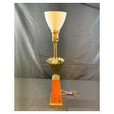 Vintage Amberina Crackle Glass & Brass Table Lamp