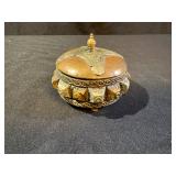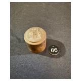 Unique Brown Glazed Crock w Wooden Lid Jar