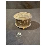 Embossed Porcelain Lamp w 3 Footed Brass Base